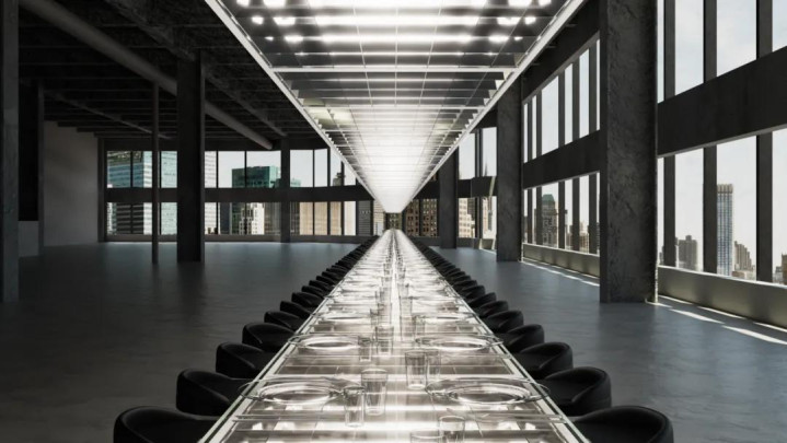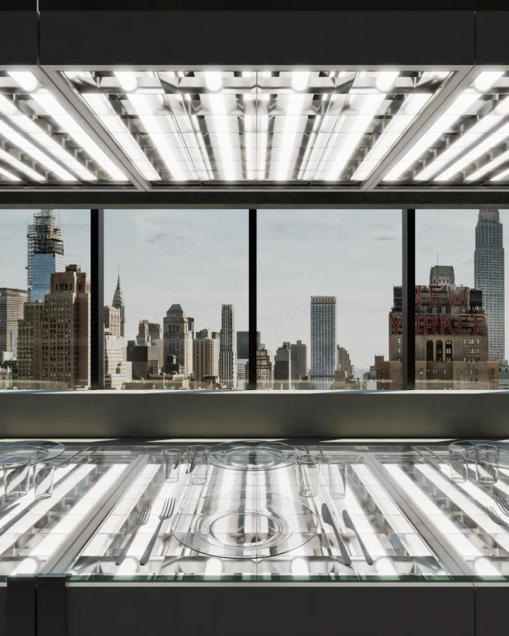这是 WE ARE ONA 与荷兰设计师 Sabine Marcelis 联手打造的最新项目。Marcelis 以“光是材料”著称,她擅长让物体呈现一种介于真实与虚构之间的存在;而 WE ARE ONA 则是近年在国际时尚与设计圈极具话题度的策展式餐桌团队,擅长在不同城市“临时生成”极短暂、极戏剧的空间场景——他们曾为 Prada、Aesop 等品牌打造项目,也常与当地艺术家合作,将餐桌当作表演的结构来使用。
