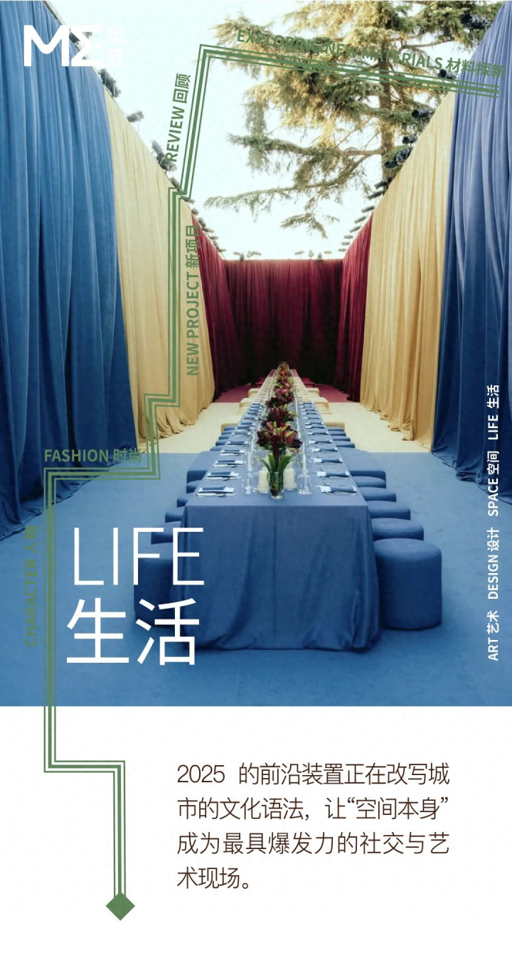 把这两类实践并置,就能看清 2025 年这一波“走向户外”的更深层意义:场域开始携带并传递文化权力。换言之,设计不再是把美学放在最前,而是把“在地性”作为首要考量——设计变成挑选一个已经拥有叙事重量的场域,并在此基础上安排人与人之间的关系与节奏。